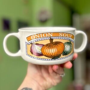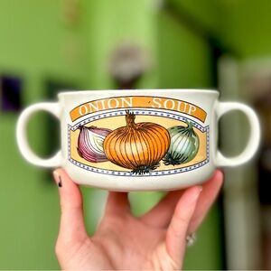Vintage Cottagecore Rustic Retro Ceramic Onion Soup Farmhouse Bowl Mug Handles