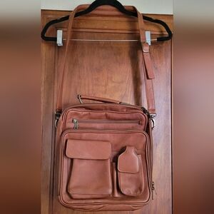 Brown Leather Messenger Bag With Many Pockets