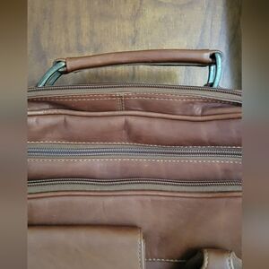 Stylish and durable brown leather men's bag, perfect for everyday use. Features multiple compartments for easy organization. 7 pockets 3 zippered ,credit card pockets phone pocket, laptop section