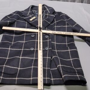 Madewell Womens Hollis Double Breasted Black White Peacoat Windowpane Check Sz L