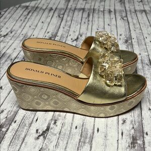 Donald J. Pliner Gold Wedge Slides with gem Embellishment