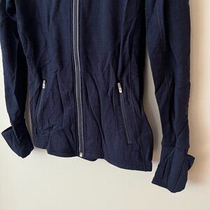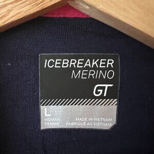 Icebreaker Merino GT Wool Blend Hooded Lightweight Jacket- Women's Size Large. Navy blue/pink trim, merino wool/spandex blend, hood, zip pockets, thumbholes. In great condition.