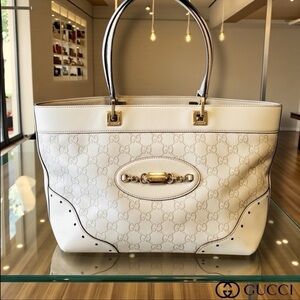 Gucci eggshell White and Silver Shoulder Bag with Monogram