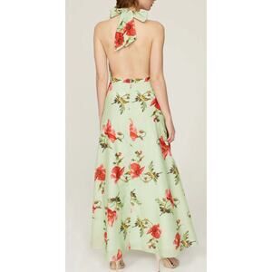 LK Bennett London Kristen Pistachio Poppy Cotton-Silk Backless Dress, Size 10