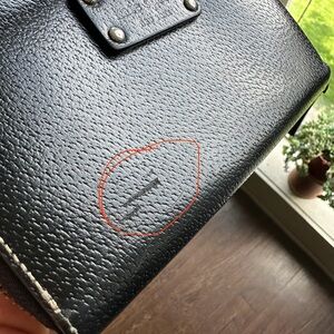 Zip around closure with leather pull.