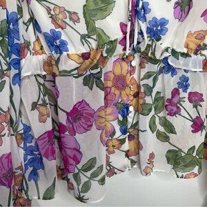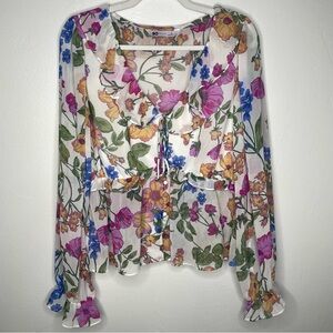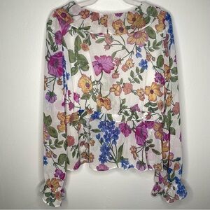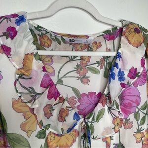 SO Pink Blue Flutter Sleeve Blouse Ruffled Tie Front Peplum Size XL