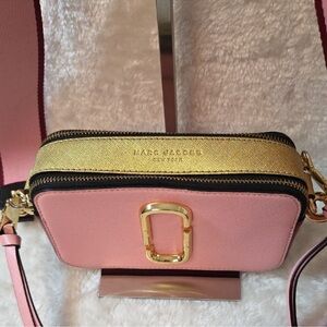 Marc Jacobs Pink and Gold Snapshot Crossbody Bag w/Guitar Strap