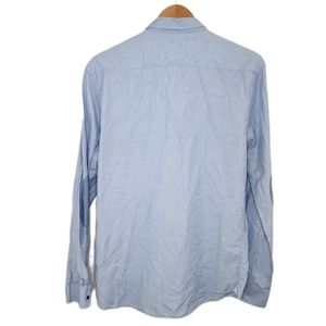 Zara Man Mens XL Powder Blue W/ Elbow Patches Buttom Up Slim Fit Dress Shirt