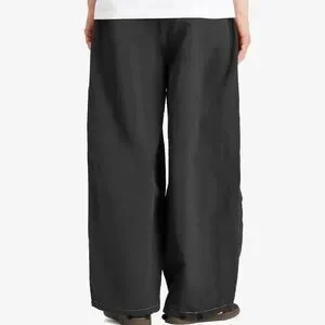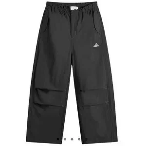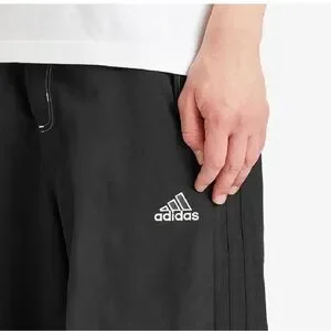 ADIDAS Parachute pants. Covered pockets and 3 strips down the sides with a bungee cord at hem. Elastic waist with draw strings to tighten waist. New and never used with tags. Hard to hard and sold out. Size medium, 16 inches at the elastic waistband when relaxed. Can stretch easy to 19 or so inches