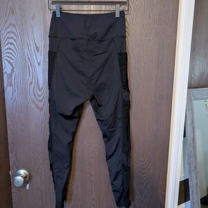 please see photos and ask questions. these leggings are gently worn with loose threads and piling. some elastic coming out of mesh cutouts