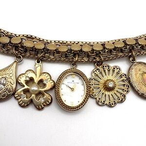 Strap: gold-tone chain charm bracelet with jewelry closure; approx. adjustable circum. 7.5"