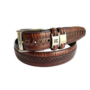 Vintage 70s Brown Leather Maxi Coat Chevron Stitching Retro Boho Womens XS