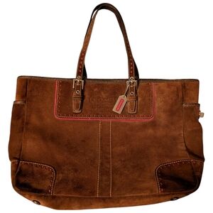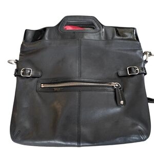 This elegant black leather hangtag with purple back from 1941 Coach combines functionality with luxury. Crafted with high-quality materials, it features a sleek design and a subtle metallic logo, making it a stylish accessory for everyday use.