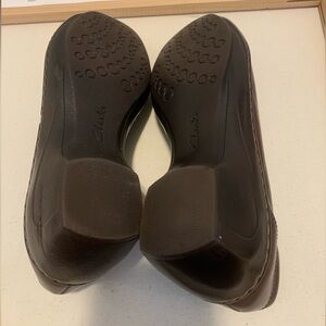 Clarks Brown Leather Leather shoes size 8.5 M. Pre-owned. Small flaw please see last picture.
