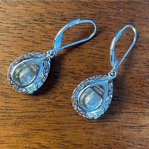Blue jewel earrings (looks blue or light green depending on the light). Engraved with “FD 925 china” on back, which means Gold vermeil - 92.5% sterling silver covered in a thin layer of gold. A stunning pair of earrings.