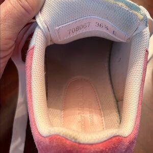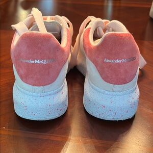 Used great condition Alexander McQueen Women’s sneakers. Size 36.5. Step out in style with these chic women's sneakers. Featuring a soft pink and cream design, these shoes offer both comfort and elegance. Perfect for casual outings or a day on the go. Minor wear pls check pics carefully.