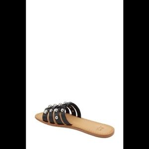 Rounded studs punctuate the straps of a cagey slide sandal with a lightly cushioned footbed. True to size.