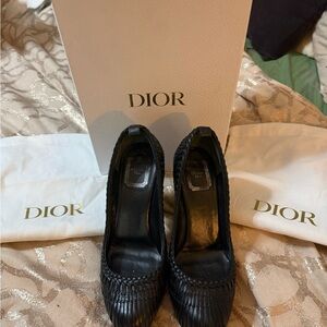Step into luxury with these Versace heels, showcasing a striking black and gold baroque design. The stiletto heels and pointed toe add a touch of elegance, making them a perfect statement piece for any sophisticated occasion.