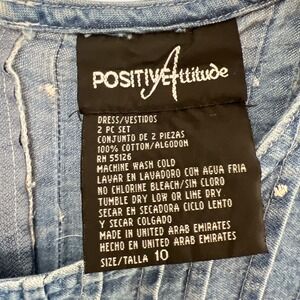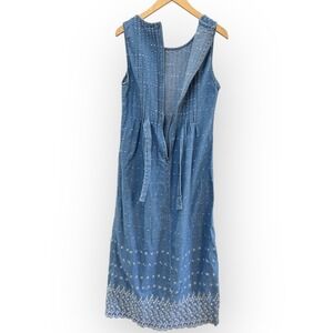 Vintage Positive Attitude Sleeveless Denim Dress Pleated Embroidered Women's 10