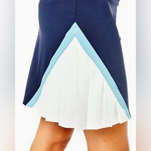 The Pebble Beach Skort is an A line golf skort with an asymmetrical pleat detail on the side. Features a high waisted band & built-in ball pocket short underneath.