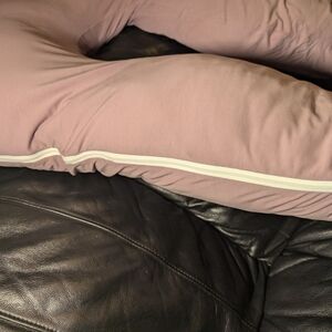 Soft and cozy pink body pillow with removable washable cover. Perfect for relaxation and support. great for pregnant mamas or for anyone with back/hip pain when sleeping.