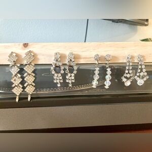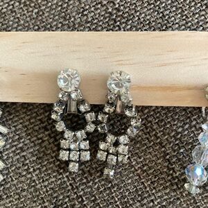 Bundle of Four Pairs of Glamorous Vintage Rhinestone Clip-On Earrings