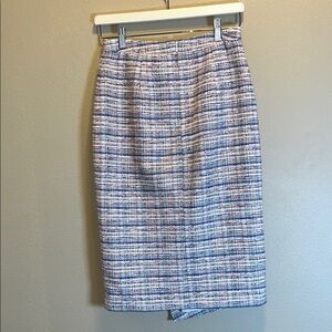 Halogen Women’s Pencil Midi Skirt in White and Blue SZ 0