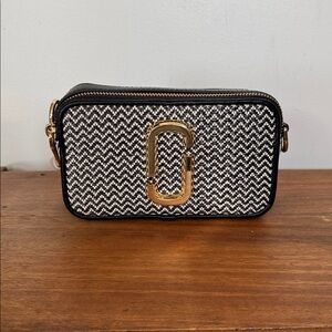 Marc Jacobs vibrant striped sweater. Features scoop neck and half sleeves. Double neck trim detail. Rib knit, very stretchy. Perfect for layering.