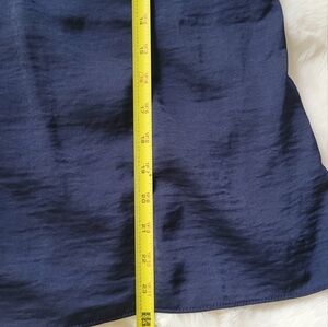 This fitted tank top by Vince Camuto features a sleek, sleeveless design in a classic blue color. Crafted from a structured material, it offers a clean and simple look with a subtle pink accent for added style.