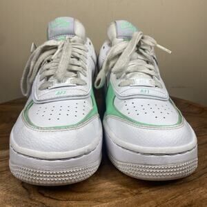 The Nike Air Force 1 Shadow Infinite Lilac Women's Shoes in white and purple, size 8, are a stylish and versatile option for athletic activities. With a low top design, lace-up closure, and standard shoe width, these sneakers are comfortable and easy to wear. Featuring a rubber outsole and leather upper, these shoes offer durability and support for walking or school activities. The signature Nike logo adds a touch of sporty flair to this classic model, making them a must-have addition to any female sneaker collection.