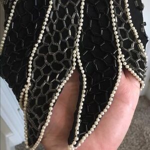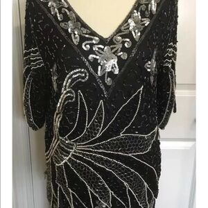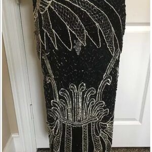 Women's Vintage Silk Black Silver Sequins Beads Pearls VLV Formal Dressy Medium