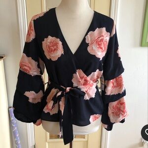 Bar III Pink and Blue Ruffled Wrap Blouse Sz Med new
