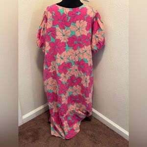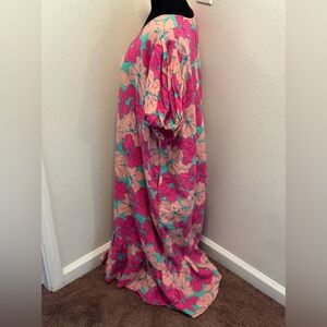 Oh Joy! The Odell Julia Linen Pink Floral Maxi Dress Puff Sleeve Anthro PLUS 2X