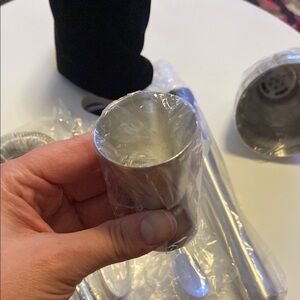 Complete stainless steel bar tool set. Includes shaker, strainer, and more. Perfect for cocktail enthusiasts.