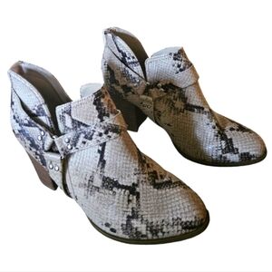 Fergalicious | Beige Heeled Boots with Snakeskin Print Size 9