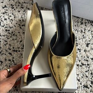 Tony Bianco Gold Heels Pointed-Toe Mules
