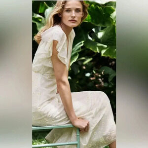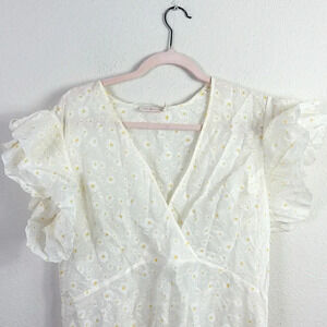 Tory Burch Susanna Daisy Print Flutter Sleeve Sheer Midi Dress Sz 8