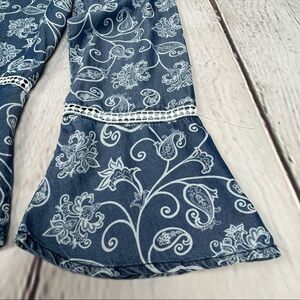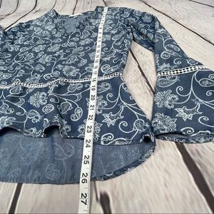 FOURTEENS PLACE chambray peasant boho floral top bell sleeves NWOT, size M