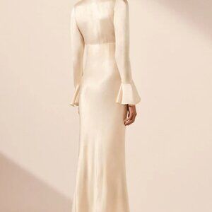 Shona Joy La Lune Frill Cuff Bias Midi Dress in Cream - Size 6