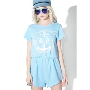 Farm Rio Richelieu Light Blue And Green Cropped Scalloped Hem Top Size XL Cotton