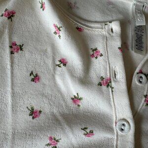 Excellent used condition Skims logo pointelle cardigan in rosebud print from this years' Valentines Day collection, size XS. Sold out quickly and hard to find! No signs of wear or damage. From a pet free and smoke free home.