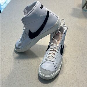 Experience the perfect blend of style and comfort with these Nike sneakers, featuring a sleek white and black color scheme. Designed with a mid-top silhouette and traditional lace-up closure, these shoes are ideal for everyday casual wear. The durable canvas material and classic sneaker look make them a versatile addition to any wardrobe.