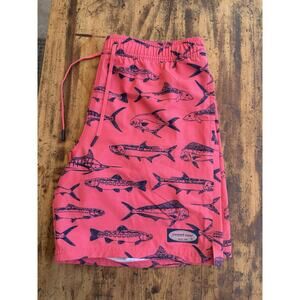 Vineyard vines Men’s Swim Trunks Pink/Blue Fish Print 34” Waist 8” Inseam
