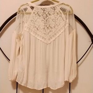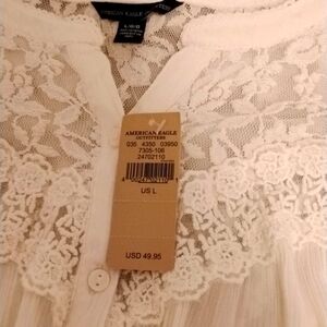 American Eagle Outfitters Lace Embroidered Buttoned Blouse Top Cream Size L NWT
