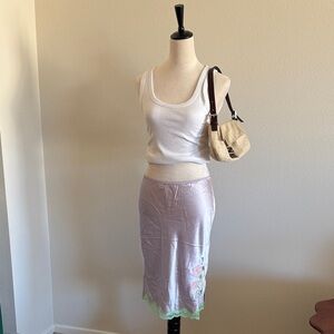 The SUKI Crochet Maxi Dress with Flowers features a V neckline and crisscross functional straps, exuding sophistication and grace. Its bodycon silhouette accentuates curves, while delicate flower appliqué adds a whimsical touch. Crafted from unlined knitwear, it offers comfort and style for any occasion.