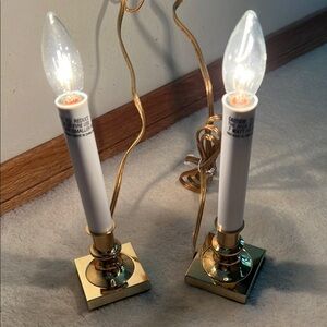 Illuminate your space with these elegant brass candle lamps. Perfect for adding a touch of sophistication to any room or window.