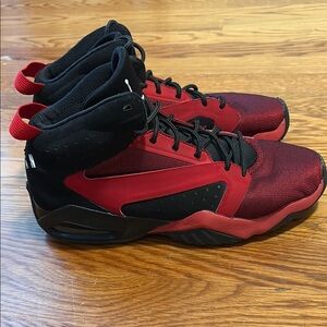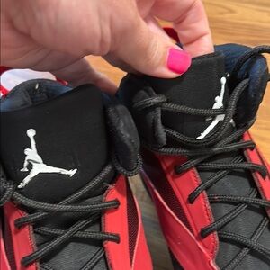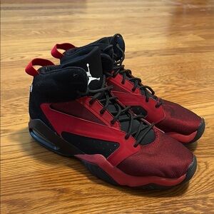 Experience the perfect blend of style and performance with these Jordan athletic shoes, featuring a bold red and black color scheme. The breathable mesh construction and supportive sole ensure comfort and durability, making them ideal for any athletic endeavor. Gently used size 8.5