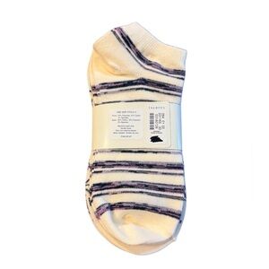 Elegant Talbots ankle socks with intricate purple patterns on a cream base. Ideal for adding a touch of style. Smoke-free, pet-friendly home. Bundle and save!