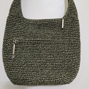 THE SAK Classic Hand Crochet Boho Casual Everyday Hobo Crossbody Moss Green