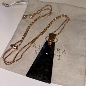 Kendra Scott Collins Long Pendant Necklace in Black Granite, Rose Gold-Plated